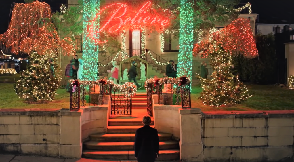 I see plastics nutcrackers, fake Santas, and nothing that’s real. I see an older couple who probably come here every year to take a picture in front of the same house, probably have years of those photographs framed on their wall. I see them holding hands, and I think how they must know each other very well.